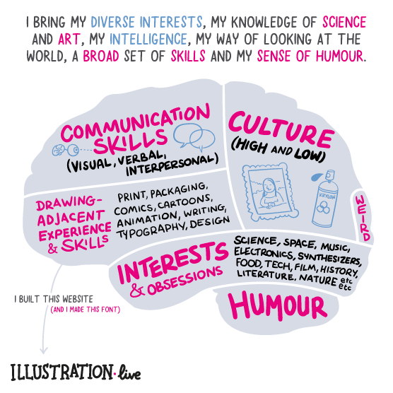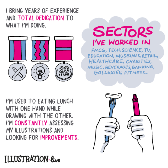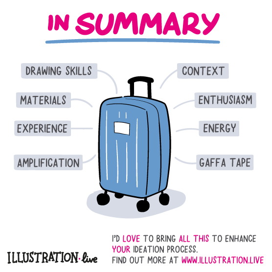 Click through the slides to find out what I bring with me to every live illustration booking!